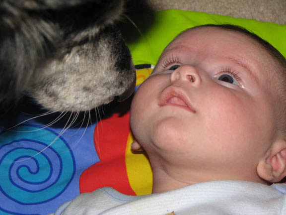 Logan: We're having more screaming fits (his, that is). I get such anxiety when he screams so much. Not only does it get me frustrated and angry at the time, later I feel so bad that he's unhappy. He's not a bright, cheery baby most of the time. We did interview someone to come to the house and watch Logan when I go back to work in January (I work at home as a techincal editor). She seems nice, and we'll probably offer her the job. She's all of 19 and has two kids of her own--so she has more experience than I do.